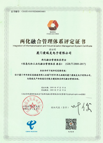 兩化融合管理體系評定證書